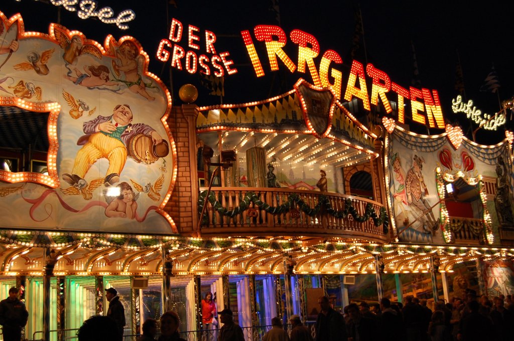 We got up, met Wayne, Kim, and Clare (Sunni arrived slightly afterwards), and made our way down to Oktoberfest. We headed for the Schottenhamel tent, where we’d heard the first keg is tapped. No one could get into the main body of the tent (by the way, tent is a misnomer, this is a huge building, more like a barn) without a reservation (which had a minimum of 10 people, plus a lot of money for something like 2 chickens and 20 beers), so we took a seat outside at the non-reservation tables, under the heater. We saw (mostly heard, lots of people) the opening parade come by, part of which twisted in and entered the Schottenhamel tent. Shortly afterwards, around noon, judging by the cheering and fireworks, they tapped the first keg of Oktoberfest. Cool to be as close to that event as we could be.