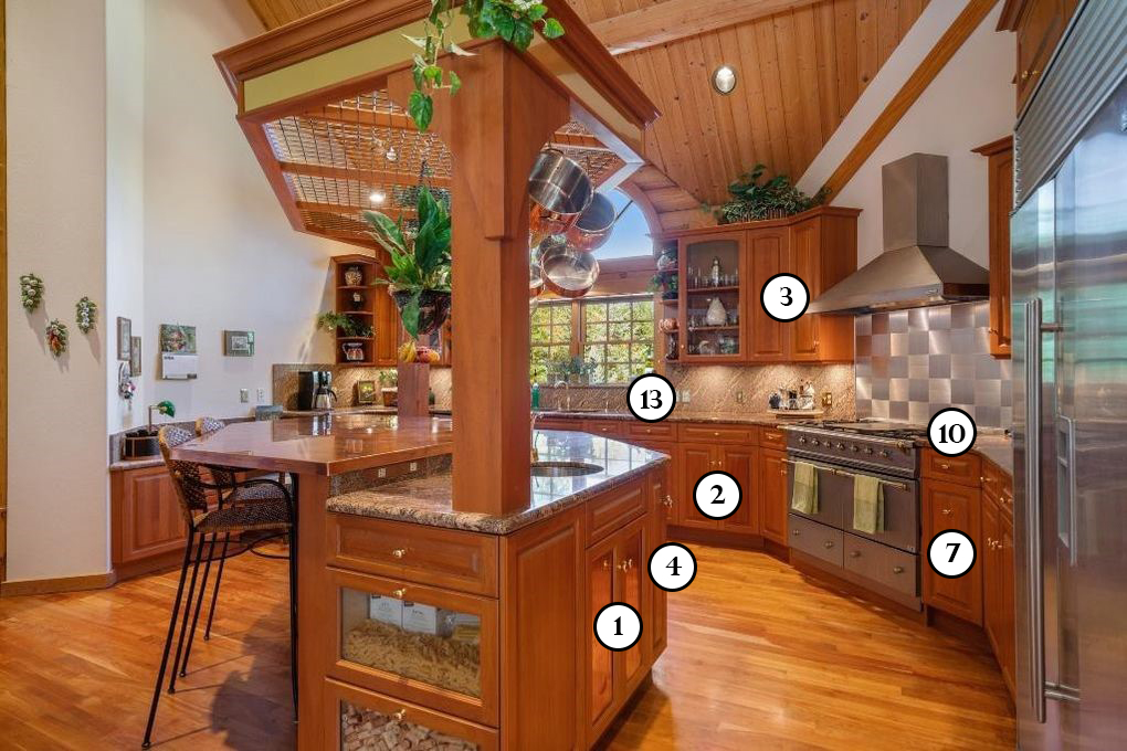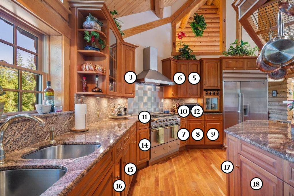| 4. Baking supplies, hot sauces | 10. Knives | 16. Garbage |
