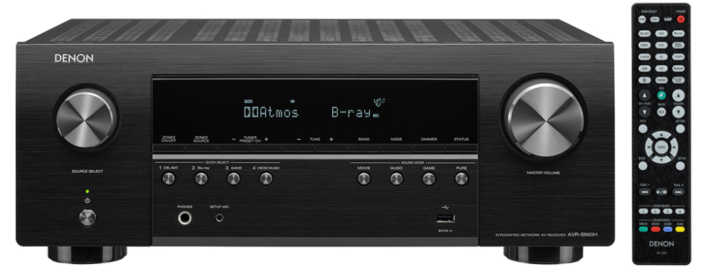 The Denon receiver in the back of the theater room receives all of the various inputs and sends them on to the projector.