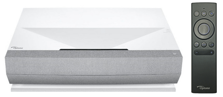 If the projector is showing a generic home screen or otherwise doesn’t seem to be on the right input press the Home button on the Optoma remote (middle button of the lower 3), use the left/right sides of the big circle button to navigate to HDMI 1, and then press the center of the big circle button to select it.